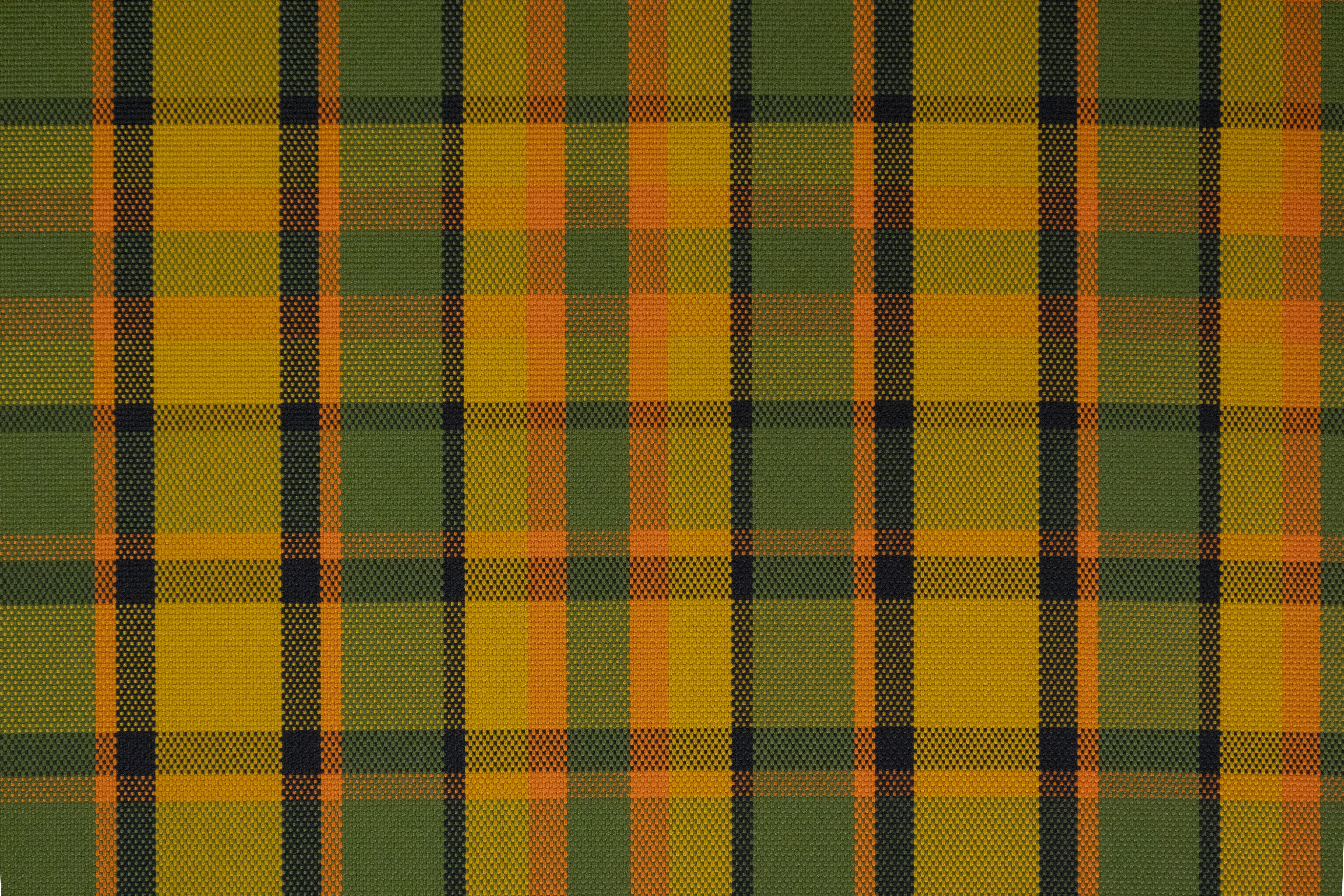 Utilizado nas versões camper da Kombi T2 (1968–1979), apresenta padrão xadrez colorido em tons como laranja, verde, amarelo e azul. Aplicado em bancos, almofadas e camas dobráveis, tornou-se símbolo do estilo retrô e da cultura de viagem dos anos 1970, unindo identidade visual marcante e resistência para uso automotivo.